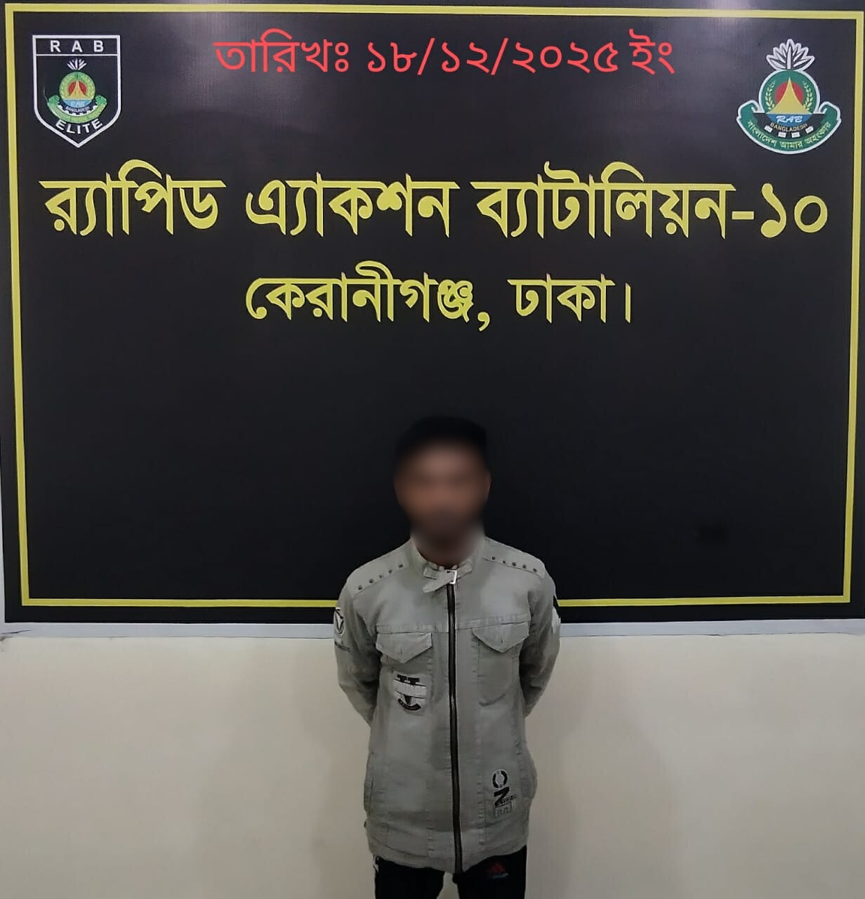 কেরানীগঞ্জে মাদক ব্যবসা, চাঁদাবাজি ও বিভিন্ন সন্ত্রাসী কার্যক্রমে জড়িত এক কুখ্যাত সন্ত্রাসীকে আটক করেছে বাংলাদেশ সেনাবাহিনী। দক্ষিণ কেরানীগঞ্জ থানাধীন ইকুরিয়া ব্যাপারীপাড়া এলাকায় কেরানীগঞ্জ আর্মি ক্যাম্পের নেতৃত্বে পরিচালিত এক সুপরিকল্পিত যৌথ অভিযানে তাকে আটক করা হয়।